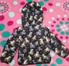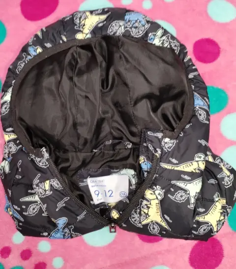 Se encuentra en venta chamarra para niño color negra con dibujos de dinosaurios, talla de 9 a 12 meses, marca C&A, en buenas condiciones.
