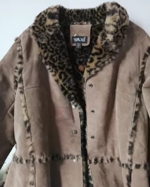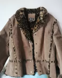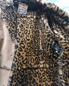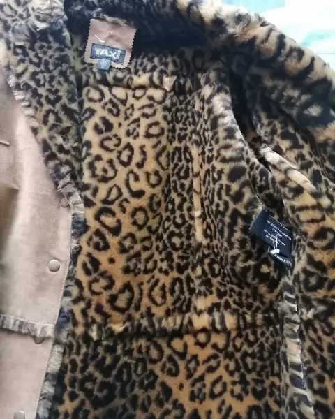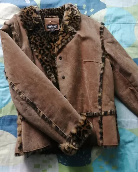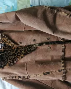 Chamarra de ante color café muy calentita, por dentro es animal print leopardo.