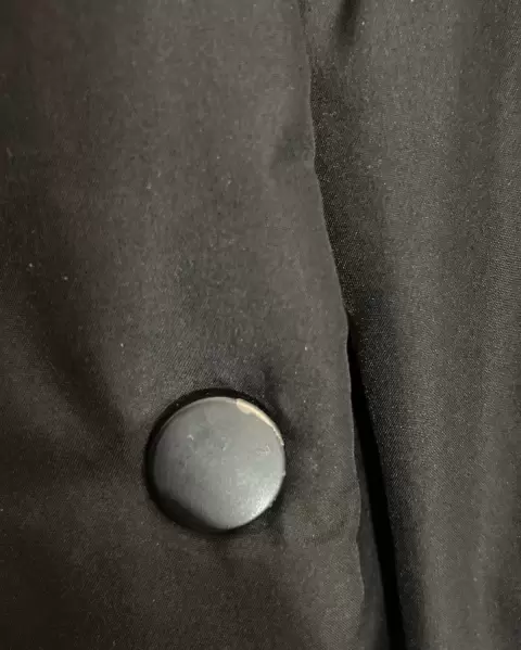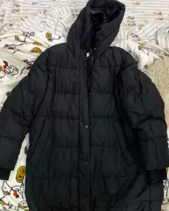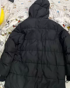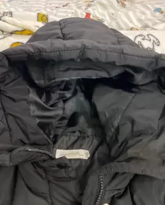 Chamarra en color negro con gorro (no se desmonta), con un botón tallado que no afecta en su uso (subí foto), no está pesada y es muy calientita para estos fríos, de axila a axila mide 66 cm