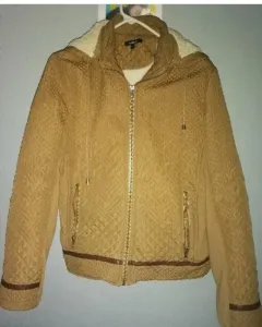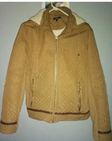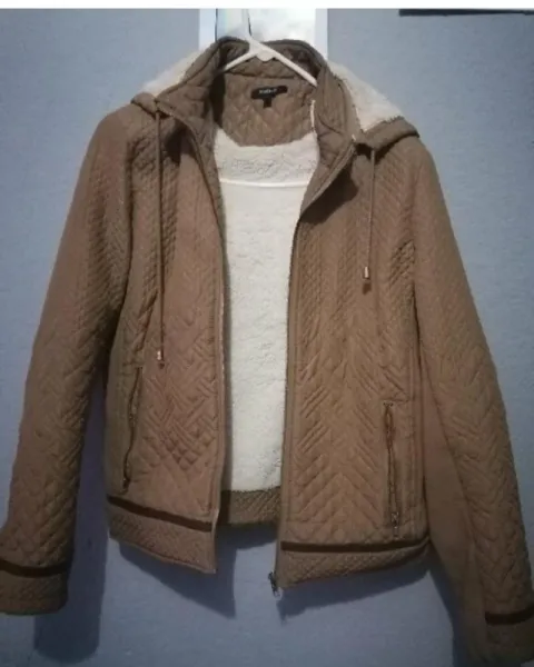 Chamarra color café muy abrigadora ya que tiene forro de borrega super suave, talla grande, en excelentes condiciones adecuada para los días de lluvia.