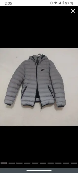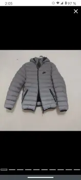 Chamarra Antirreflejante. Color gris, talla m, marca Nike, cierre negro, viene incluido con gorra