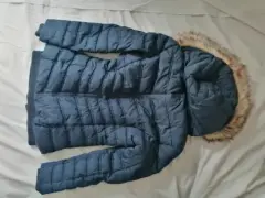 Chamarra azul larga. Chamarra azul con gorro desmontableBolsa interior y dos bolsas exterioresNueva con etiquetaLarga, te cubre hasta los glúteos