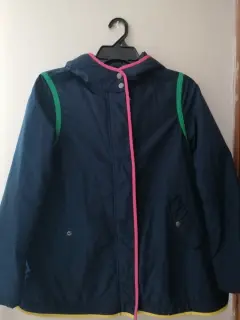Bonita Chamarra Benetton para niña, cuenta con bolsos a los lados, cierre largo, con gorro excelente para tiempo de frío.