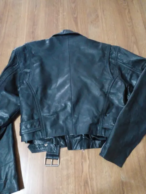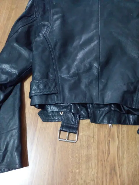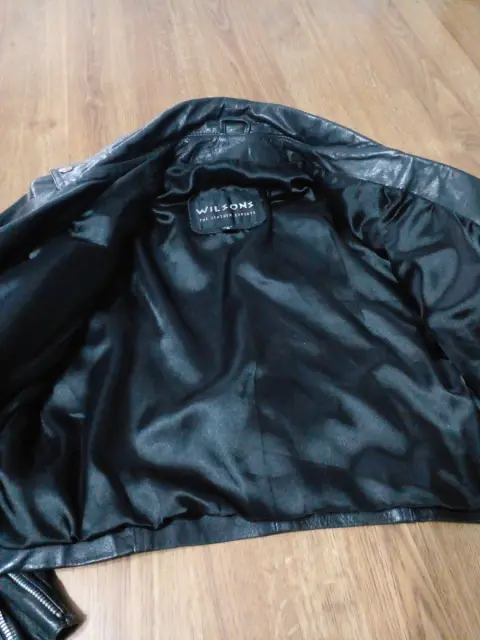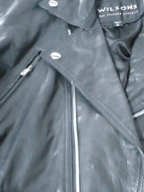 Chamarra biker Piel. Super lindaEs 100% piel marca Wilsons Esta en perfecto estado La piel esta bien hidratada, los cierres le funcionan a la perfección así como los botonesDe axila a axila mide 50 cmDe cintura mide 90 cmDice talla chica pero si queda a mediana viene amplia