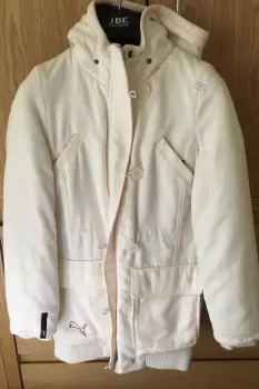 Chamarra blanca/beige. Chamarra de algodón con gorroMarca pumaTalla ChEn muy buen estadoCalientita, perfecta para temporada de frío