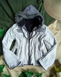 🤩Precio a tratar si la compra es inmediata😊 o si te interesan mas prendas, se envian en un mismo paquete para ahorrar en envios❄Chamarra color blanco con negro✨Es talla S👉Esta afelpada por dentro🪡MEDIDAS de costura a costuraHombro 42 cmAxila 48 cmLargo 49 cm❗Tiene un pequeño detalle marcado en las fotos, aun costado de la bolsa derecha, no muy visible a la vista