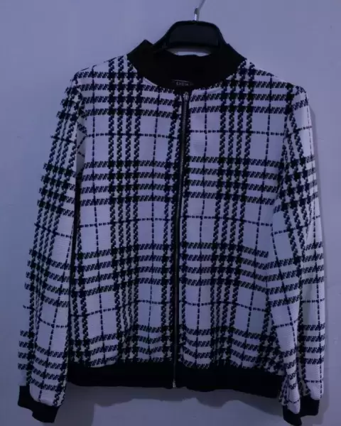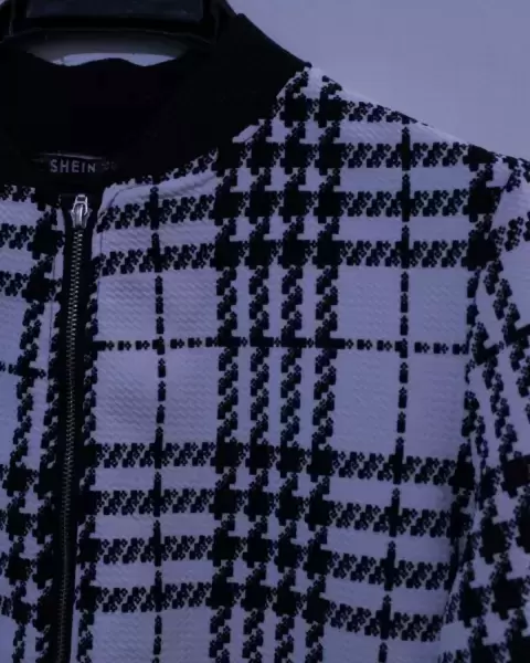 Chamarra bomber jacket blanca tartan