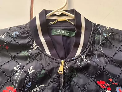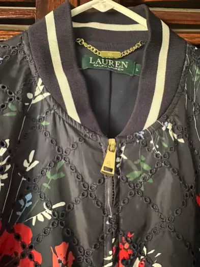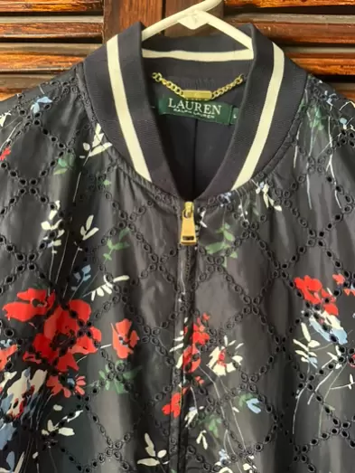 Chamarra bomber RALPH LAUREN, talla L, en excelentes condiciones! Estampado de flores!!