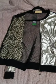 Chamarra dorada brillante, la parte trasera es malla negra y el interior es leopardo. Una pieza muy divertida para no pasar desapercibido!Talla: LNuevaMarca: Lizette Collection