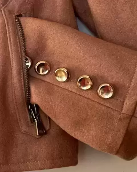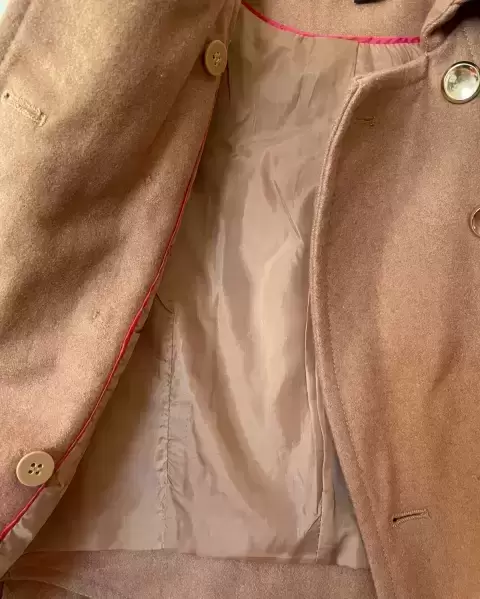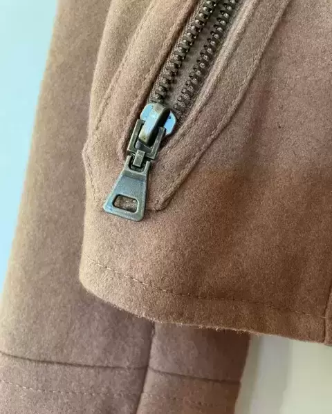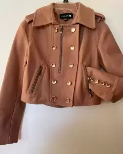 Chamarra café claro en tela tejida. Calientita y muy útil ya que se puede usar para eventos formales o casuales! En excelentes condiciones.