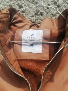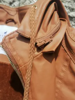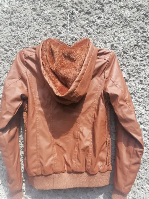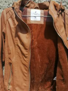 Chamarra café. Chamarra color café de piel sintética con afelpado completo y capucha