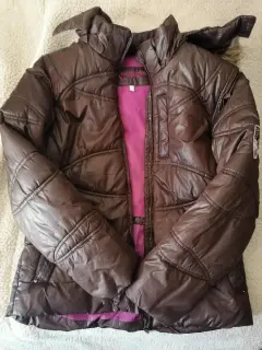 Chamarra café Hawke&Co. Chamarra de pluma café Hawke&Co median excelente para clima frío, muy calientita con adapta ion de peluchiyo en la capucha