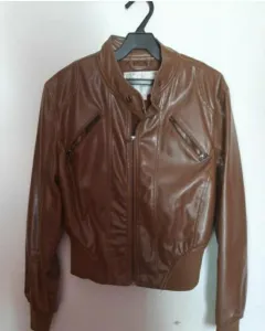 Chamarra café tipo piel, talla M, en excelentes condiciones.