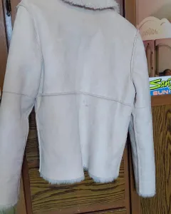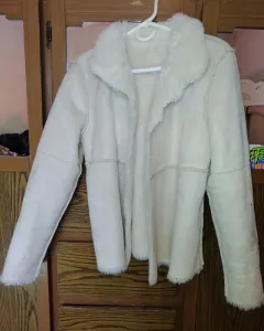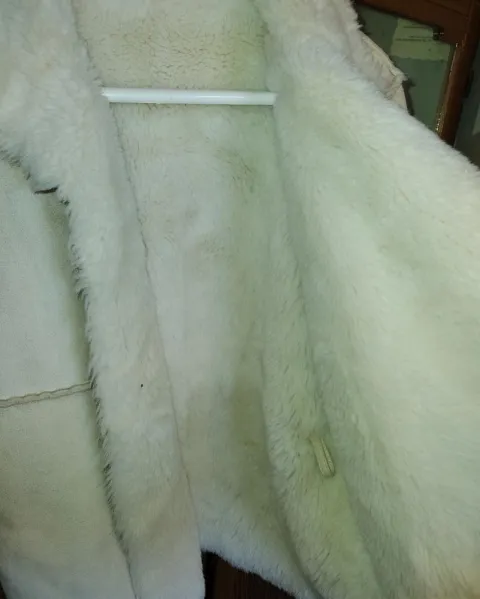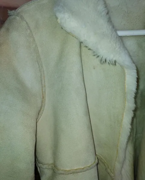 Chamarra calientita beige. Chamarra tipo piel y por dentro aborregada. Muy calientita, no traspasa el frío.Tiene manchas que se parecían en una foto. Es necesario enviarla a la tintorería.