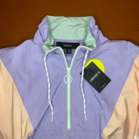 Chamarra casual en tonos pastel. La chamarra llega al nivel de la cintura.Se incluyen fotos de la página de Forever 21 para que se aprecie el color exacto de la prenda y cómo luce puesta.🔖 Composición: 🔖👉 100% poliéster🌟 ¿Es tu primera compra? Usa mi código de descuento: preloveditems9sCHn