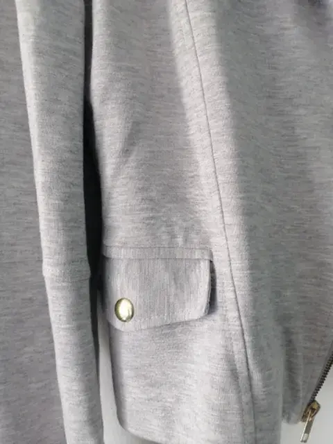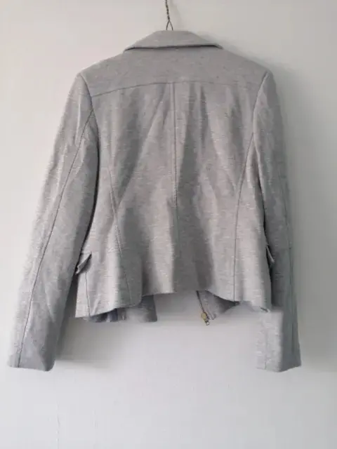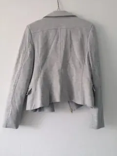 Chamarra casual tipo biker. Tela gruesa, tipo saco, con cierre y bolsas a los costados con broche
