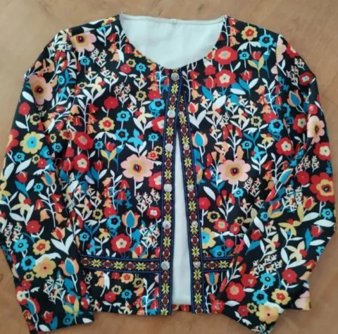 Chamarra cazadora. Blazer floreado marca Shein. Broches de presiónForrado por dentroTalla S