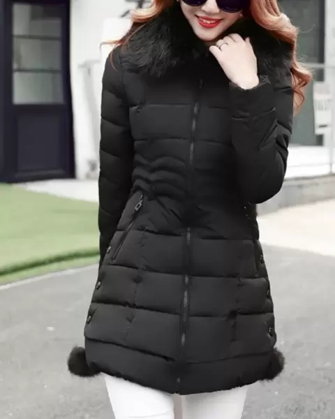 Hermosa Chamarra cazadora acolchada* Con capucha de pelo desmontable * Ziper para ajuste* Bolsillos en costados* Pompones desmontables en los costados* Talla M* A estrenar con etiqueta