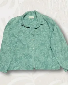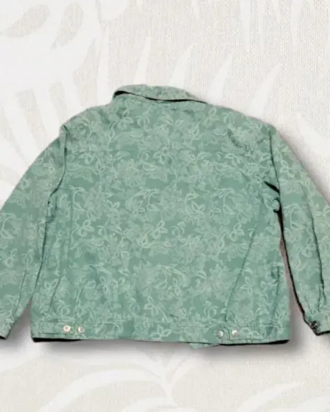 Linda chamarra cazadora color verdeTalla 14Con estampado unico, con hombrerasMedidasHombro a hombro 46cmAxila a axila 60cmMangas 57cmLargo 65 cm