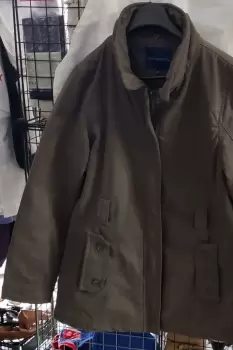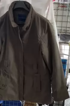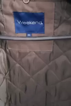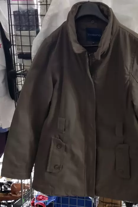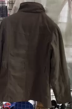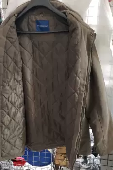 Chamarra Cazadora Verde Militarforrada en el interior 100% poliésterRelleno de Poliéster95% exterior de poliéster y 5% algodónMide de axila a axila 45 cmAltura 65 cmTalla EGNo tiene su cinturón como el gorro desmontable. Marca Weekend