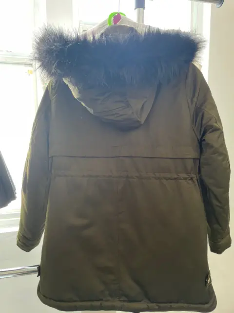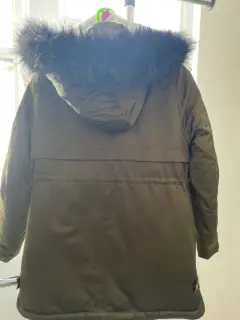 Zara Kids Casadora Chamarra Color Verde Militar Talla 11-12 años Altura 115 cm Material Pluma Cierre y Broches dorados Cuello afelpado Capucha con cierre Jareta en la cintura Estado Usado una vez Precio 1450Medidas en centímetros Ancho hombros 37Cintura 103Largo 68