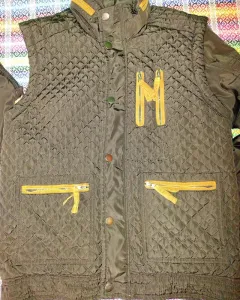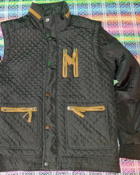 Chamarra- chaleco, en cual se le quitan las mangas con cierre. Es de color negro, tiene interior de "peluche", sin detalle alguno.