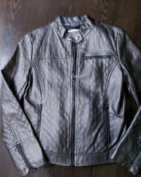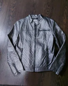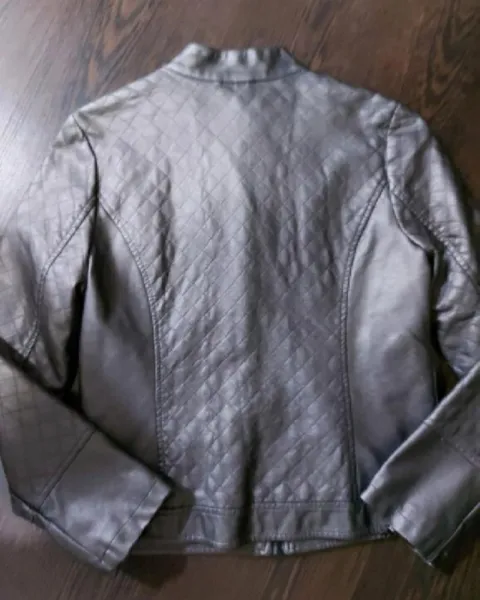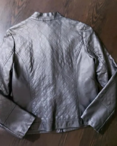 Chamarra Coffe Shop tipo piel. Tipo piel color plata talla S de axila 46 cm