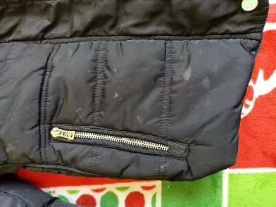 Esta súper calientita el único detalle que no cuenta con gorro y tiene una manchitas está en buenas condiciones