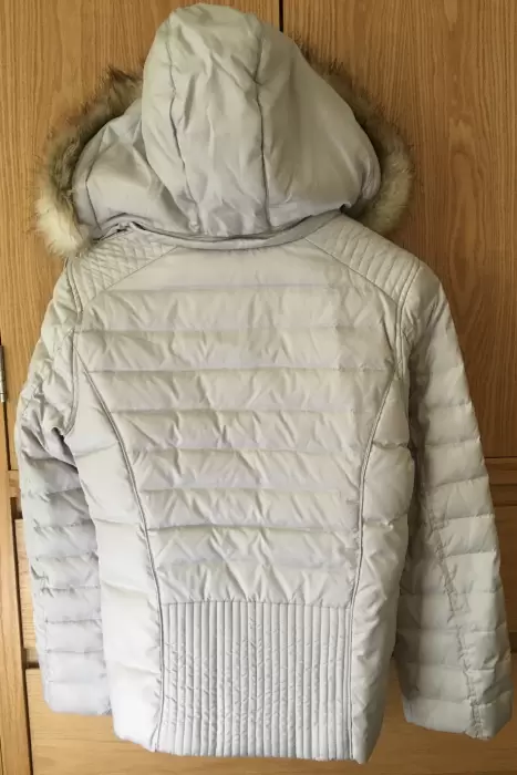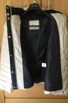 Chamarra Color plateado. Chamarra doradaMarca NáuticaTalla M-LBolsillos con sierreEl gorro es desmontableSe puede cierra con sierre y botones