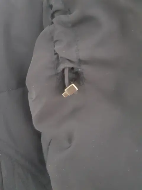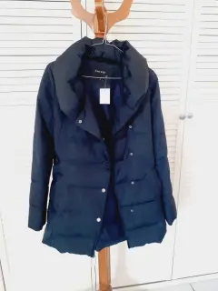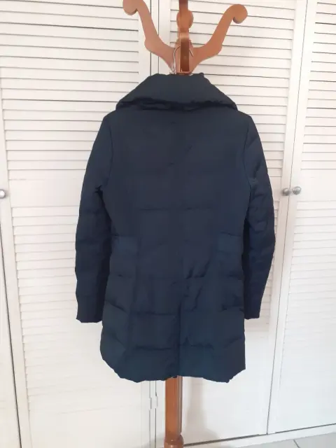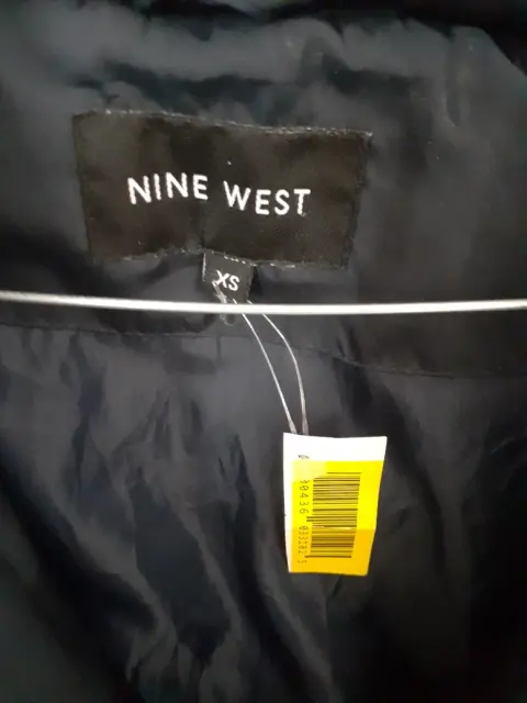 Chamarra Nine West color azul obscuro precioso, cómoda, calientita, larga arriba de la rodilla talla xs, cuello acojinado luce increible.