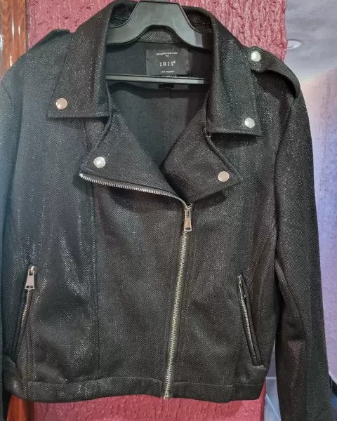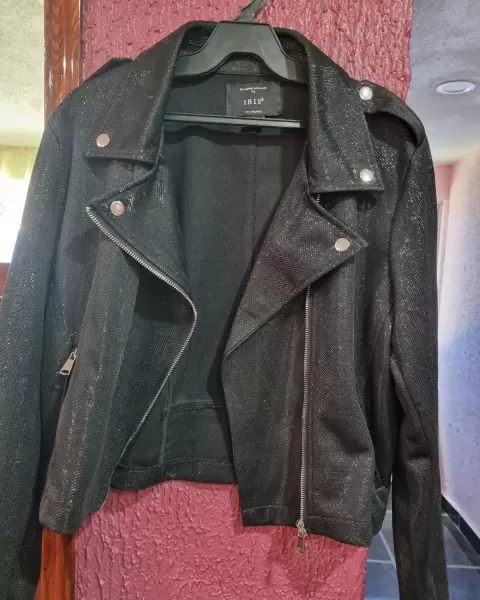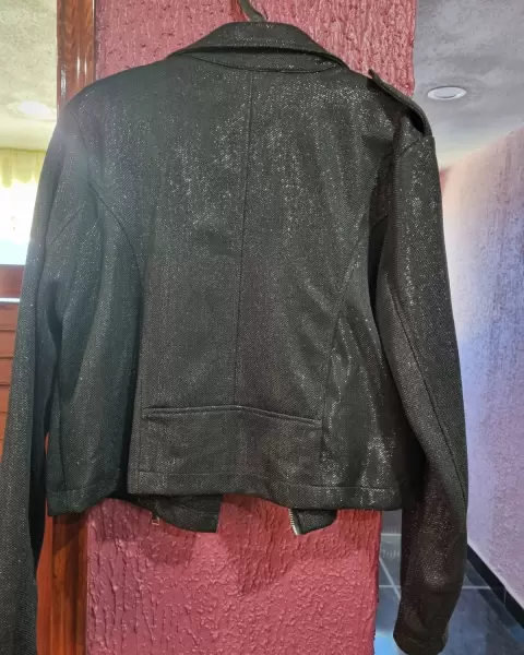 Chamarra con tela brillosita 🎆. Chamarra talla M se encuentra en buenas condiciones,solo tiene una puesta :)