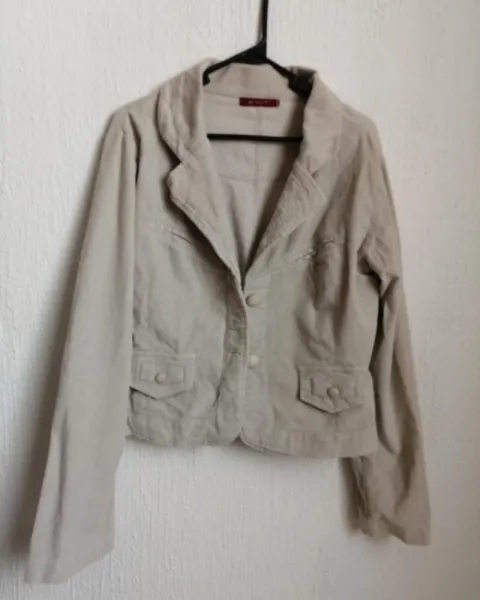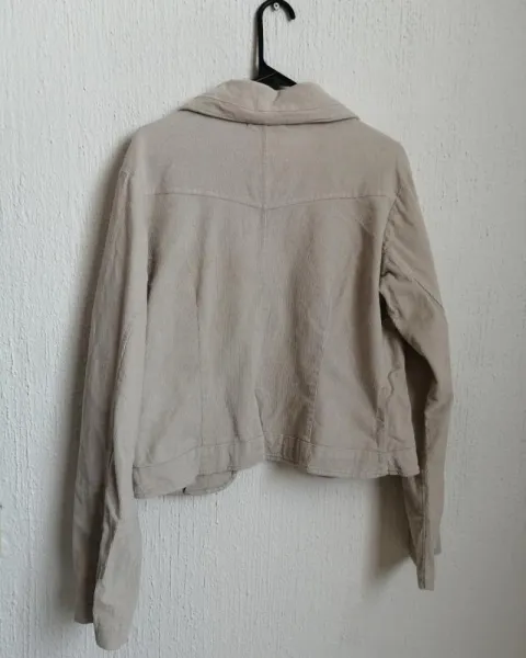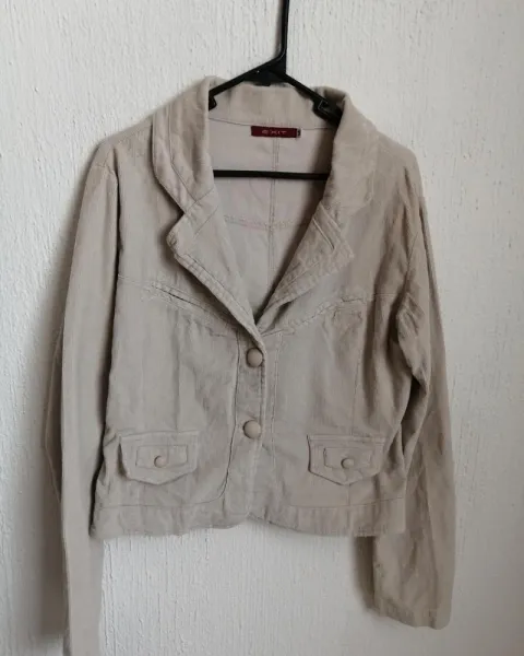Chamarra corta de Pana talla M. Chamarra de pana marca exit, es una chamarra corta, con mangas largas, tiene un poco de desgaste en la línea de dobles del cuello pero con el cuello doblado no se nota.