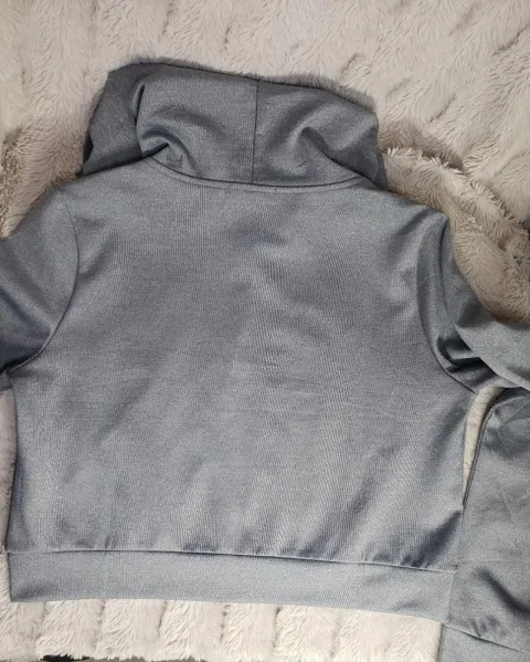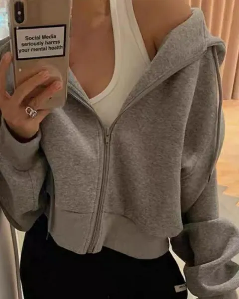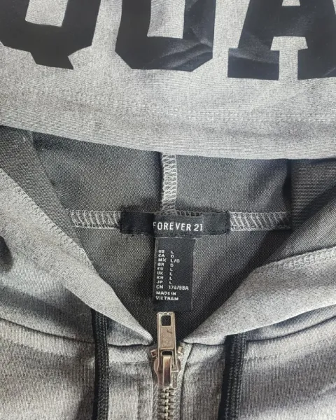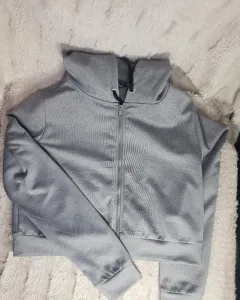 bonita chamarra corta con capucha,color gris perla. Con capucha marca forever 21, talla grande pero queda bien desde talla mediana.