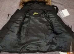 Chamarra corta GUESS T S, en color negro con herrajes y cierre en dorado, tiene un plisadito muy coqueto en la parte de atrás simulando una biker (gorro desmontable) ✨ Medidas ✨49cm de axila/axila55cm de hombro a tiro (largo) Por el tipo de tela NO ESTIRA