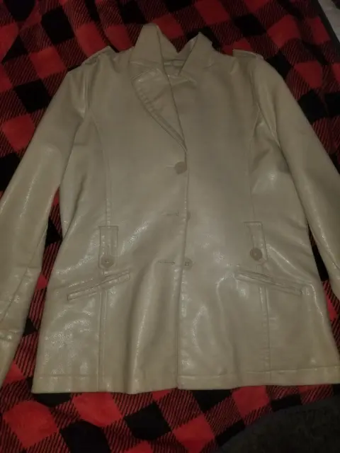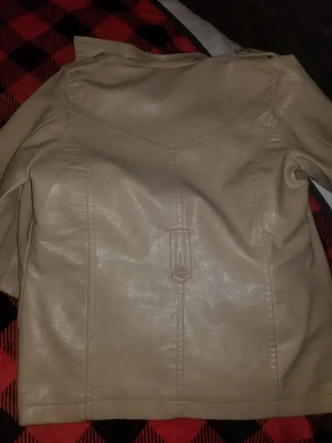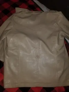 Chamarra de dama color café claro. Tipo vinipiel talla mediana, esta intacta