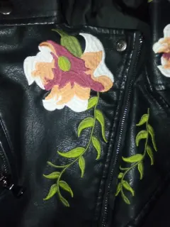 Chamarra de cuero negra bordada