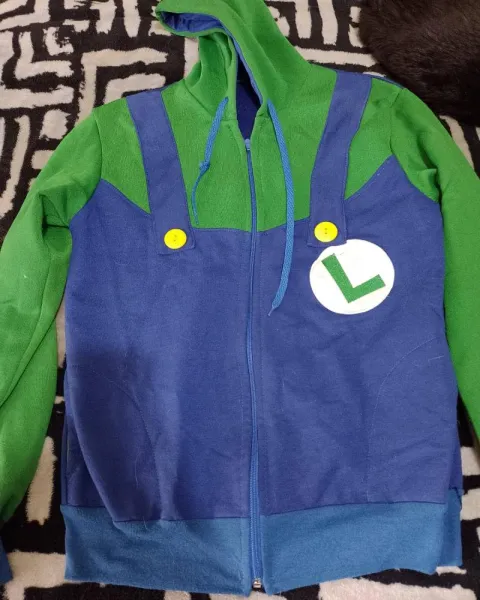 Chamarra con diseño de luigi de Mario bros los colores son azul con verde está sin ningún detalle