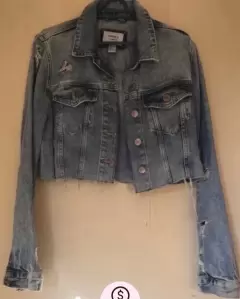 Bonita chamarra denim rota de lavado ligero, bolsas en la parte de enfrente, corte holgado, talla M, marca forever 21