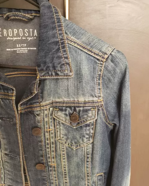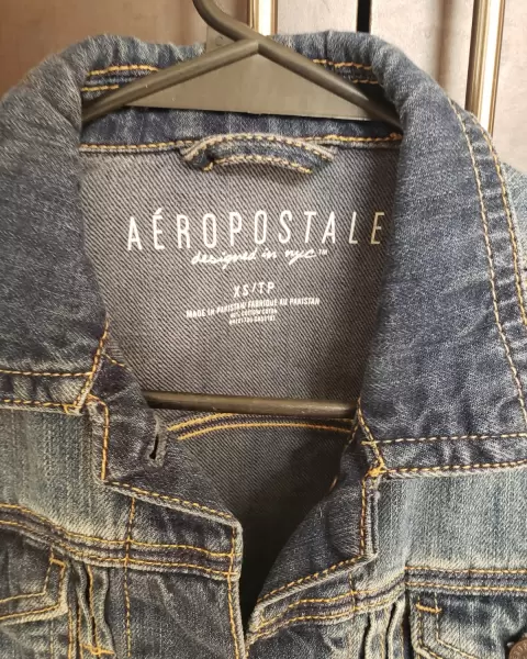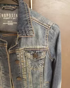 Hermosa chamarra sin detalles es me mezclilla.Llega abajo del ombligo aproximadamente