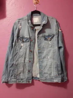 Chamarra de mezclilla. Chamarra y mezclilla sin ningún defecto muy juvenil cuenta con bolsas por dentro de igual manera por fuera tiene estos efectos como tipo rotos o rasgados así viene el diseño