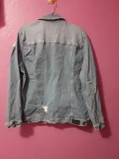 Chamarra y mezclilla sin ningún defecto muy juvenil cuenta con bolsas por dentro de igual manera por fuera tiene estos efectos como tipo rotos o rasgados así viene el diseño