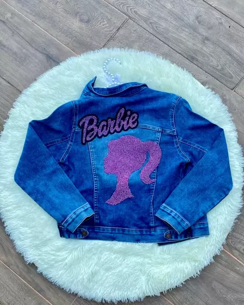 Chamarra de mezclilla barbie. ¡hola! El diseño que te agrade en $600 son con pedrería y bordado ,NO son estampado.Tengo talla chica, mediana y grande