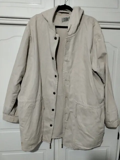 Chamarra de mezclilla larga para dama. Chamarra de mezclilla larga 55 CM de hombro de largo 90 CM largo manga 64 CM con gorro el la parte superior y trasera cinta de ajuste a la cintura 2 bolsas y botones en la parte frontal