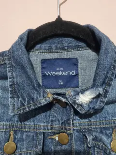 Chaqueta de mezclilla rasgada color azul marino talla 8-10 años marca Weekend
