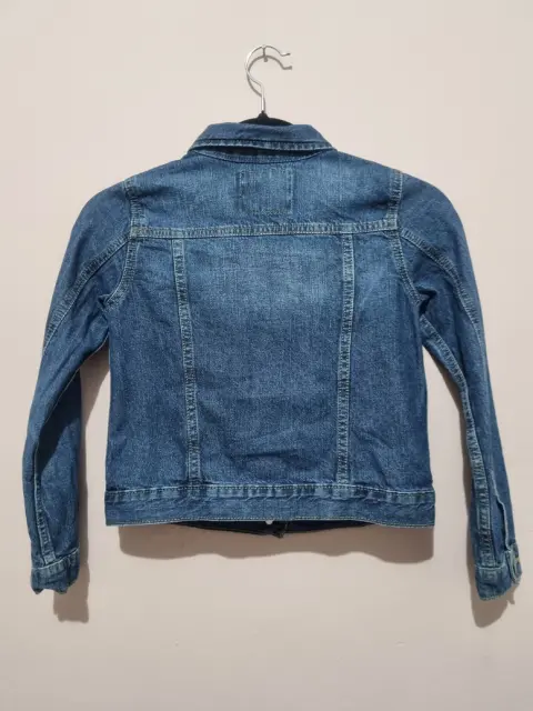 Chamarra de mezclilla para niña. Chaqueta de mezclilla rasgada color azul marino talla 8-10 años marca Weekend