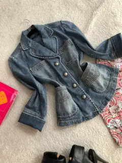 Chamarra de mezclilla vintage. Hermosaa chaqueta de mezclilla estilo vintage, manga 3/4, con bolsas al frente, botones de metal, Medidas: busto 47 cm. Hombros 38 cm. Largo 58 cm. Súper bonita!