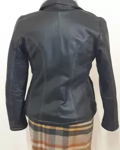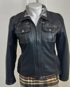 Chamarra de piel. Moderna chamarra de piel, negra con costuras cafe, en excelentes condiciones talla ch, con forro de peluche, muy calientita