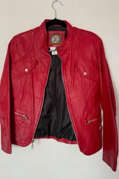 Chamarra de piel (no vinipiel) talla MColor rojo brillanteResistente al fríoPerfecta para salir de noche o agregarle color a tu outfit negro.