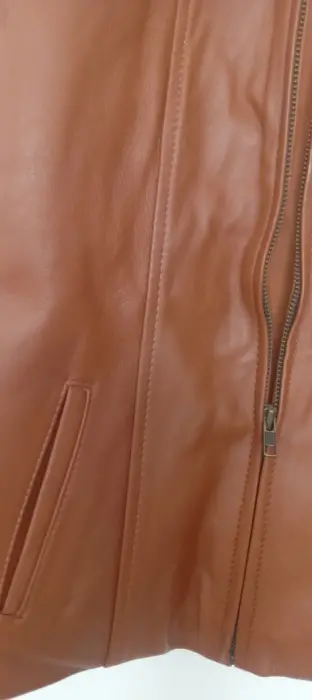 Chamarra de piel de borrego. Color café chamarra de vestir calentita con forro bolsas laterales cierre al frente corte recto