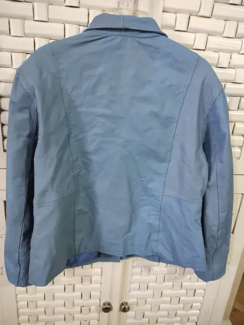 Descripción:Chamarra de Piel Genuina Talla 40 Color Azul con Bolsas Laterales y Forro de Poliéster*Se puede hacer un paquete con varias prendas para pagar un solo envío